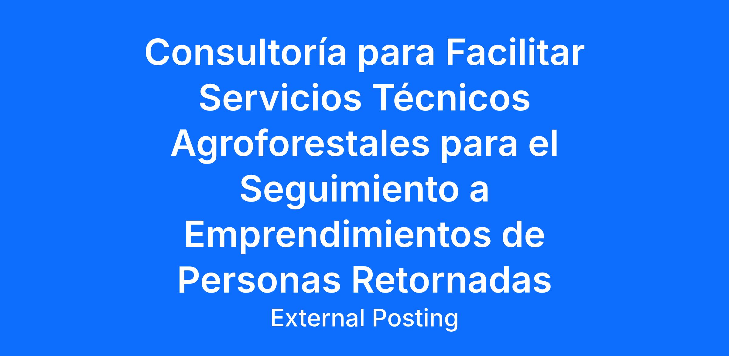 Consultoría para Facilitar Servicios Técnicos Agroforestales para el Seguimiento a Emprendimientos de Personas Retornadas